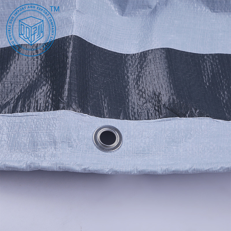 | Materials | Made of woven high-density polyethylene (HDPE) fibers, laminated on both sides with low density polyethylene (LDPE) coating. 6 bands of 7.5cm width made of woven black HDPE fibers fabric and coated with grey or black LDPE on the outside.with reinforced rims by heat sealing on all sides, (or 2 sides heat sealing ), and a PE or PP rope on the edge, inside the hem |
